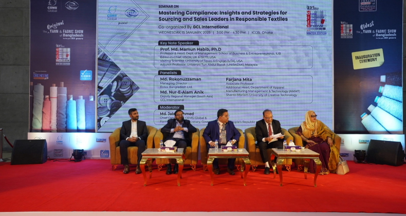 The 23rd Dhaka International Yarn and Fabric Show 2025 (Winter Edition) and the 7th Dhaka International Denim Show 2025 are being jointly organized by Conference and Exhibition Management Services (CEMS-Global USA) and CCPIT Tex China. The four-day exhibition commenced on January 15 at the International Convention City Bashundhara (ICCB).